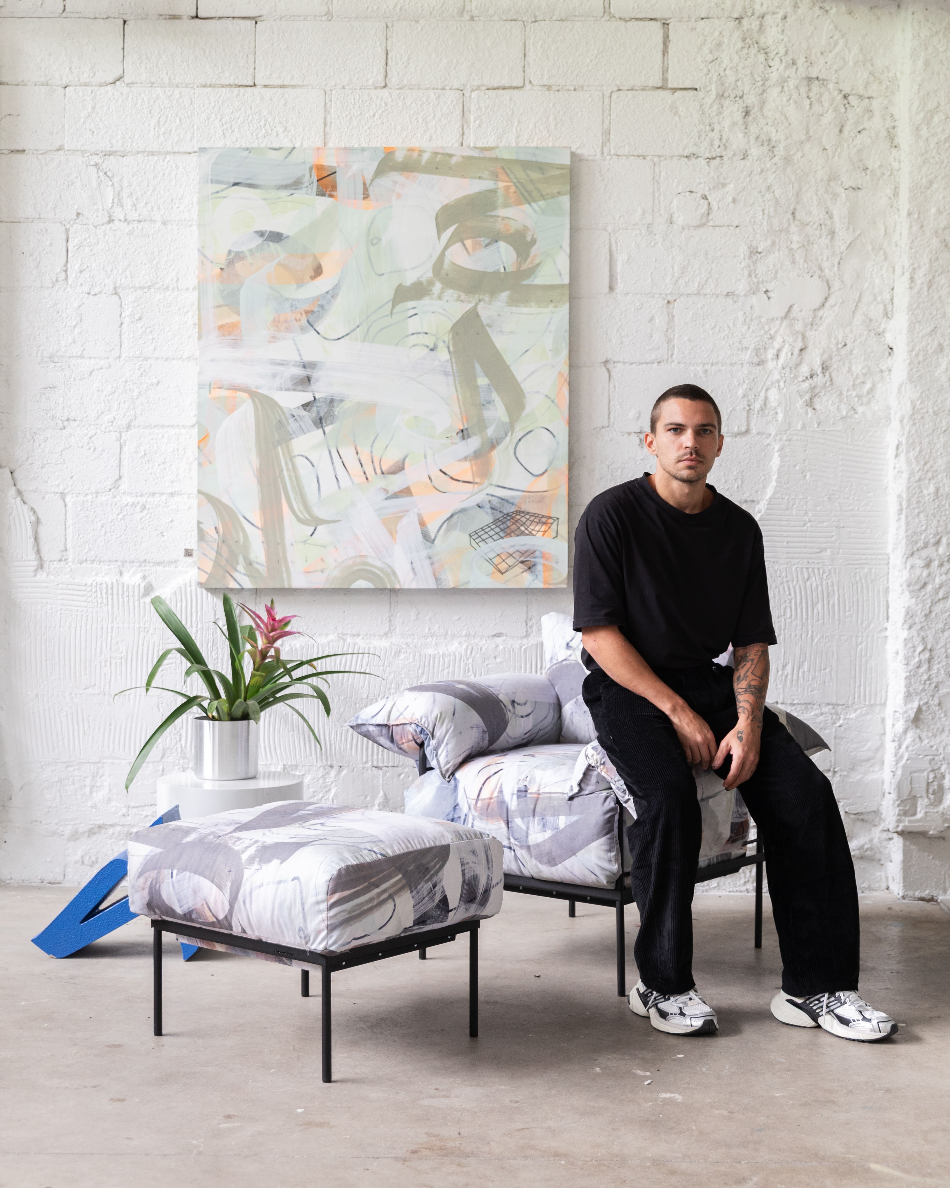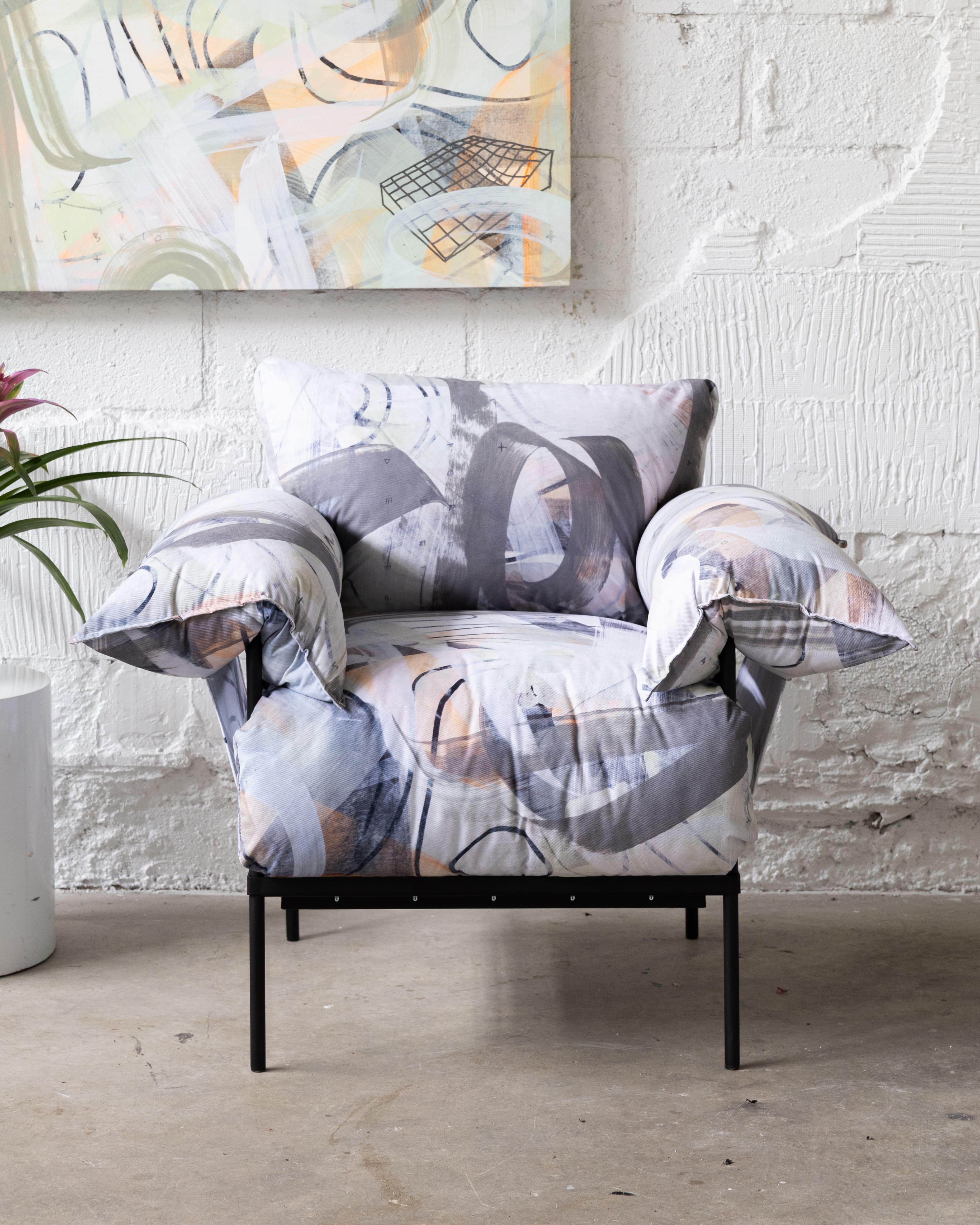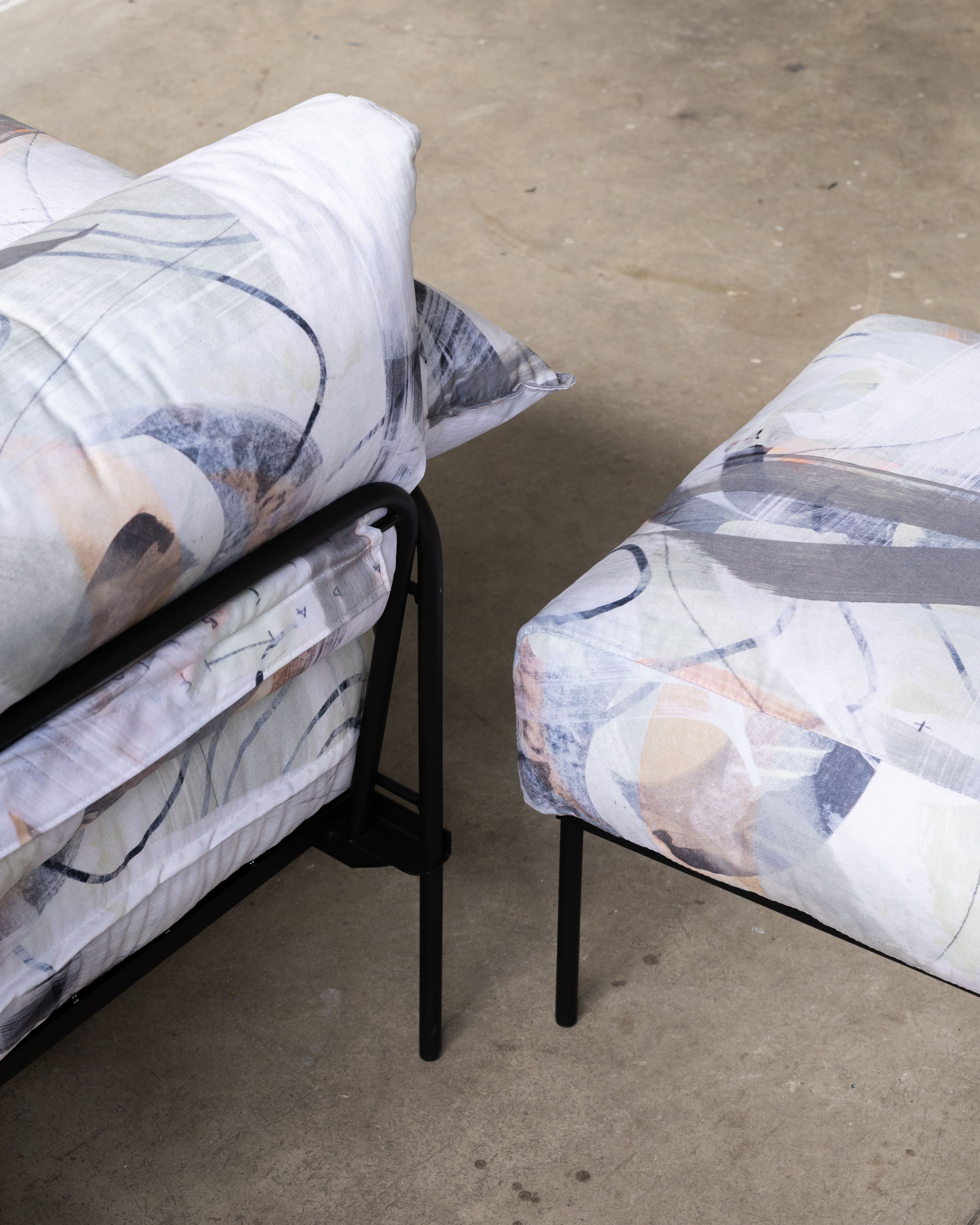 a poltrona asa petit, um dos ícones do portfólio da Linee, ganha uma edição especial com estampa assinada pelo artista multidisciplinar Rafael Sanches. reconhecido por transitar entre arte, arquitetura, moda e performance, Sanches leva para o estofado sua linguagem visual marcada pela fragmentação como expressão e pela unidade como destino, transformando a superfície da peça em um suporte artístico. o resultado da colaboração entre a engenharia da Linee e a poética transmídia do artista é uma poltrona que ultrapassa a função e se apresenta como manifesto visual — podendo ser vista de perto na Guide Shop Linee, em Pinheiros, durante o festival DW 2026.